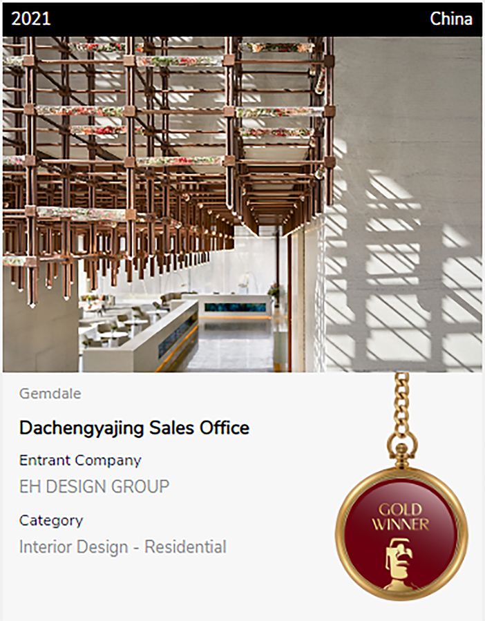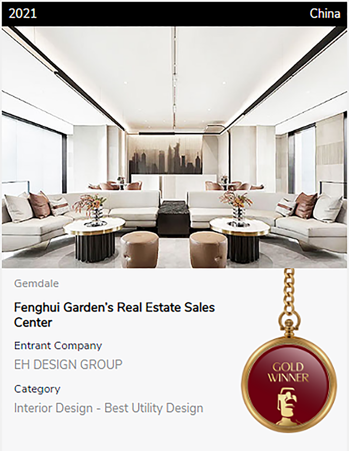 TITAN地产奖隶属美国国际奖项协会(IAA)旗下,旨在庆祝房地产行业的最高成就,在今年早些时候公布的杰出奖项获奖名单中,由EH DESIGN GROUP 易和设计集团主持的金地商置 · 大成雅境售楼处,金地 · 峰汇花园售楼处,双双获颁金奖。