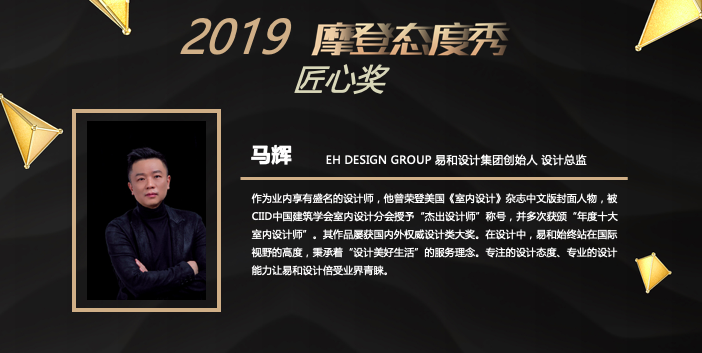 GROUP 易和设计集团创始人、设计总监马辉先生,荣获“2019摩登态度人物 - 匠心奖”。