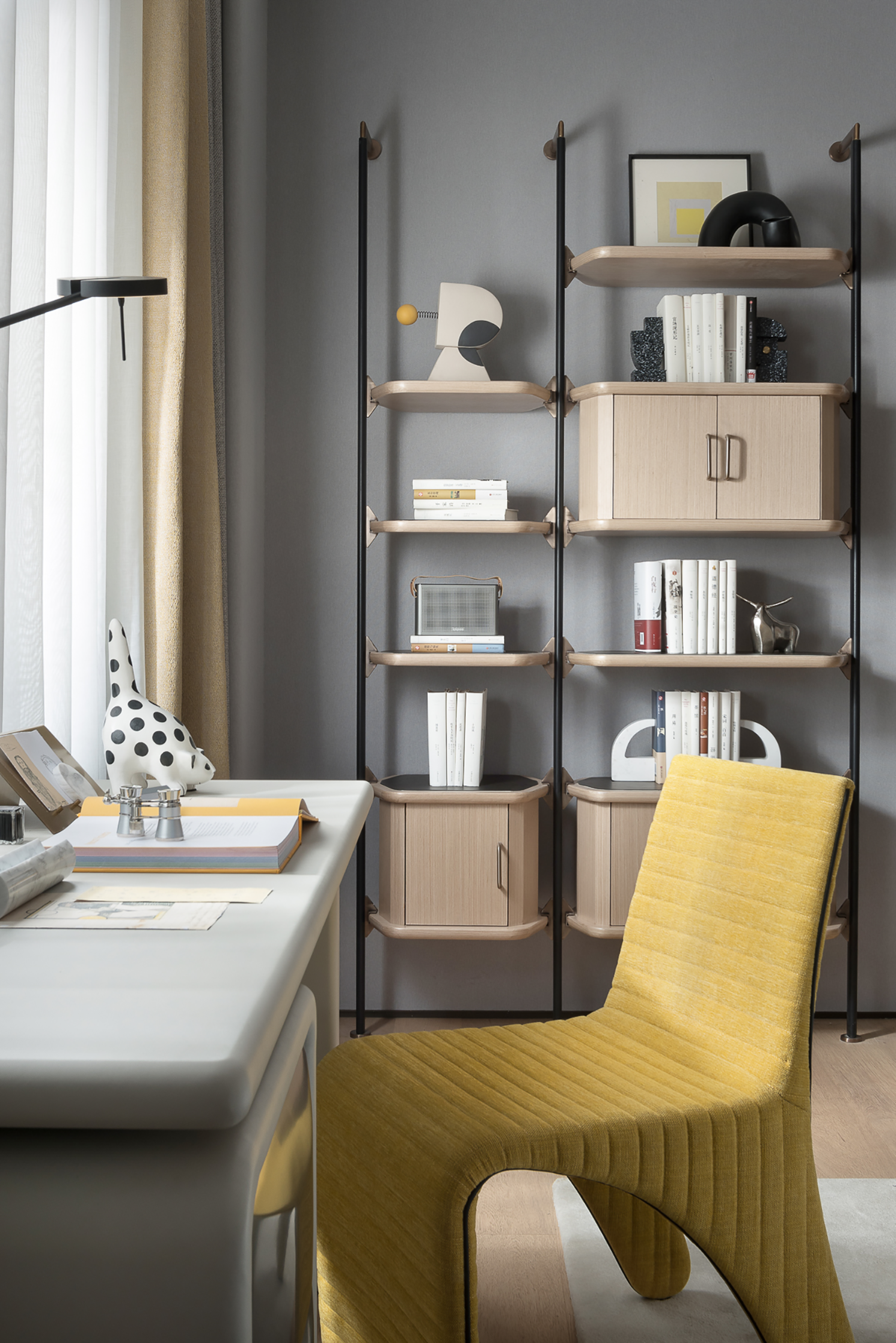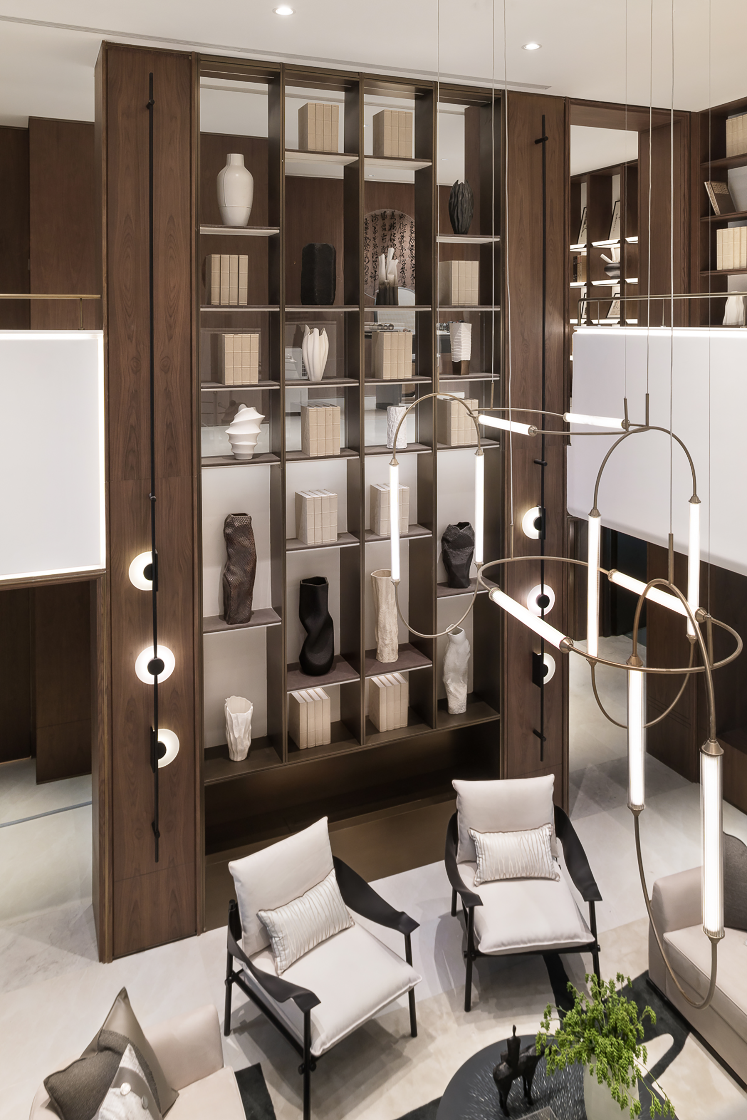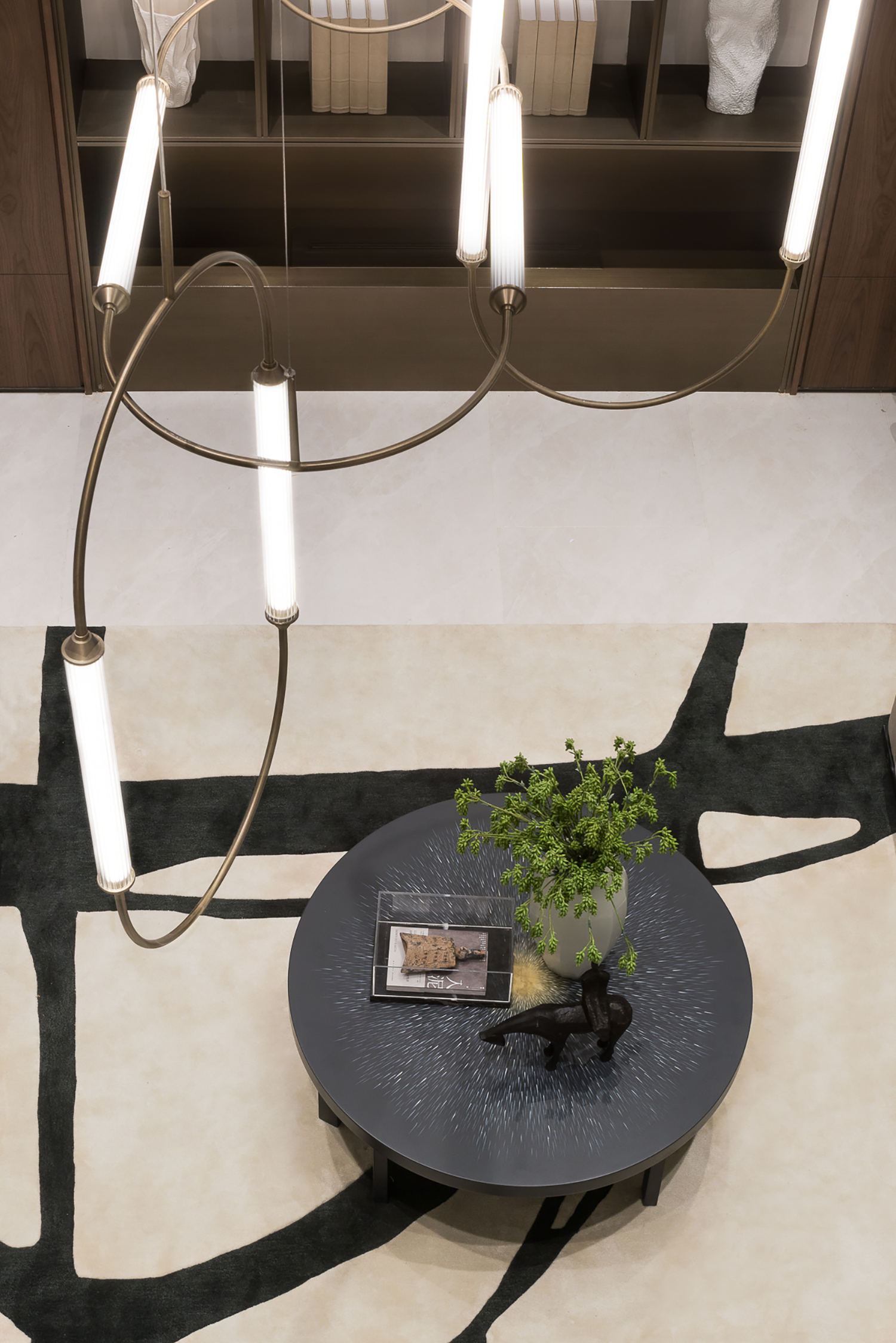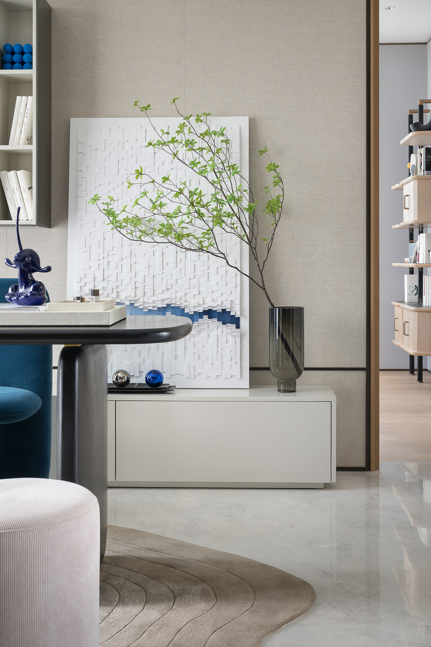从自然山水中提取古典元素,以黑白灰作为空间的主要色调,以米咖色作为空间的点缀色,将传统美学渗透进山水城市生活的日常之中,以此来表达气韵神游的清峻洒脱之风。