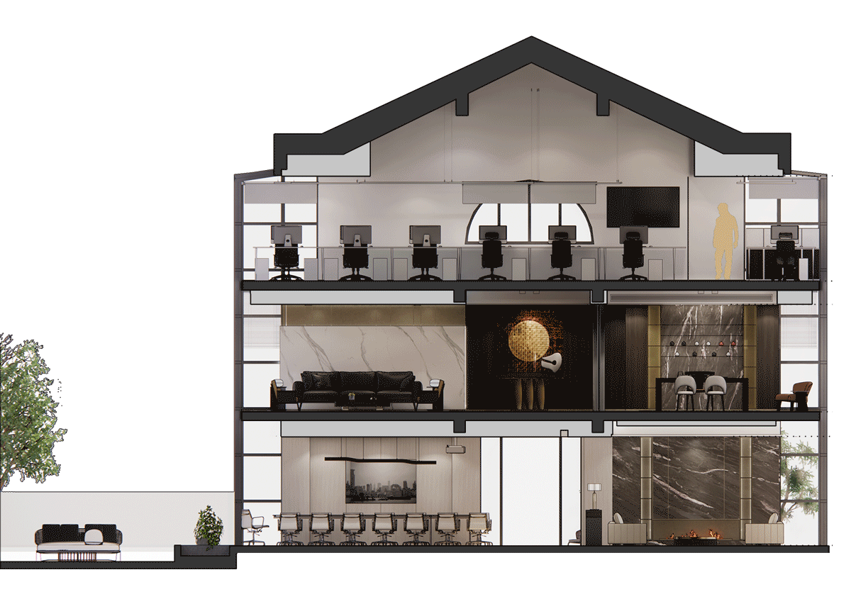由EH DESIGN GROUP 易和设计集团旗下创新设计中心,主持研发设计的海怡别墅办公空间坐落于上海浦东,犹如一抹光芒闪耀在魔都的明珠之上,十里洋场的繁华与精英文化的考究在这里交汇,集艺术馆的美感与写字楼的功能于一体,办公、洽谈、会客灵活组合,形成层次丰富的多元空间。
