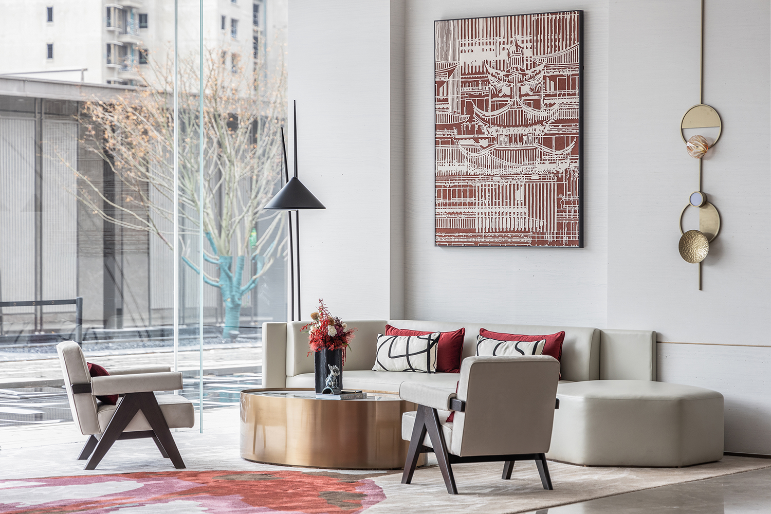 EH DESIGN GROUP易和设计集团旗下易和室内设计团队与极尚软装陈设团队,携手主持的【金地商置·海伦堡·玖悦府】便坐落于这座城市,设计团队运用现代设计手法,探究其城市脉络,既延续了时间长河里多彩的民族文化艺术,也承袭着清逸的自然人文风致。