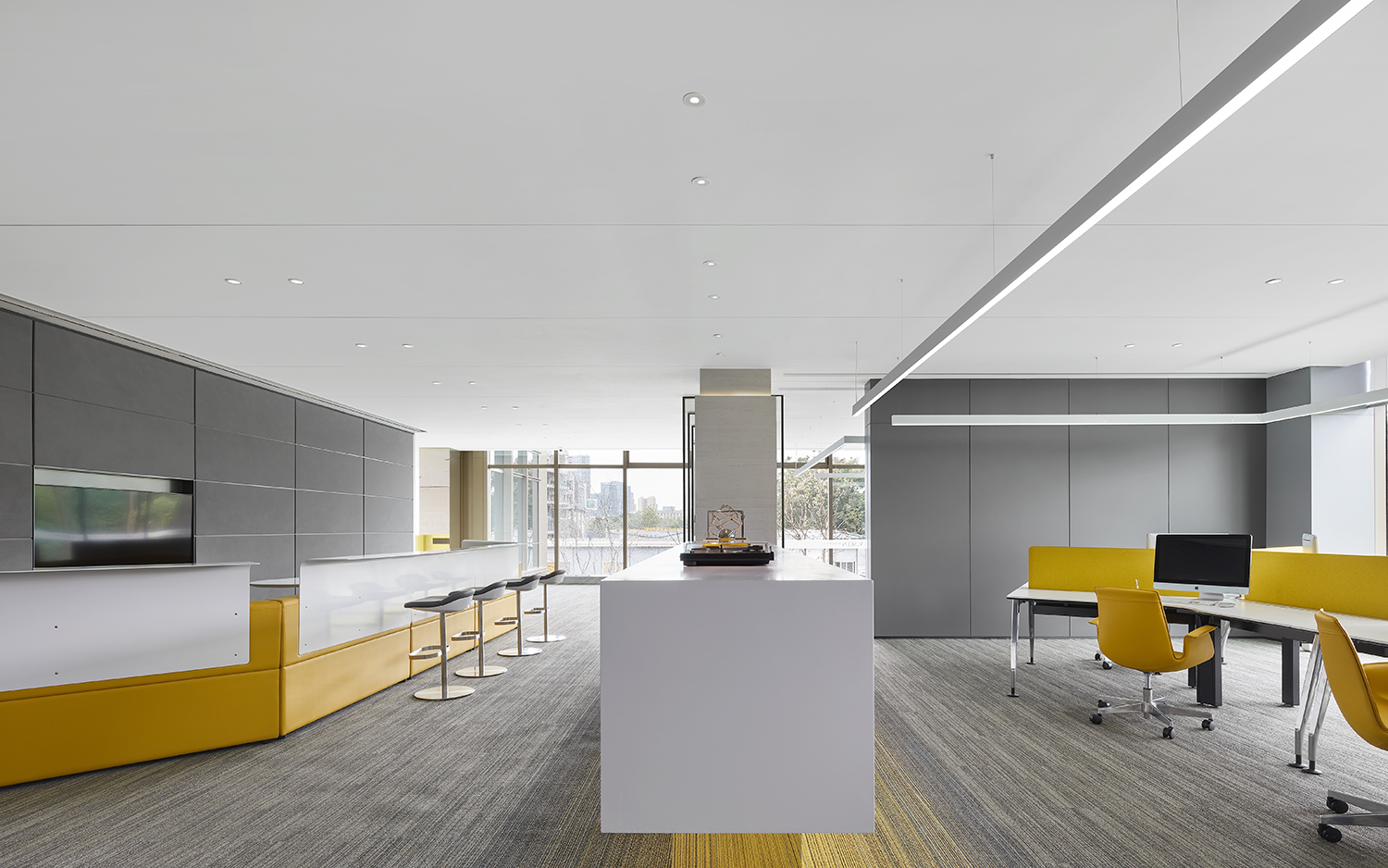 画家康定斯基曾说,一切艺术源自一个点。片段、拆解、分离、由聚合到发散,解构主义以其极其强烈的先驱精神呼应着瞬息万变的世界。金地威新科技园位于杭州,作为科创IP创新信息企业摇篮,由EH DESIGN GROUP易和设计集团旗下易和室内设计团队,携手极尚软装陈设团队共同打造,以独特的解构视角尽情畅想未来。设计师从空间中一个点延伸出去,为线与面的生成注入灵魂,在空间不断变化的点、线、面形态中衍生出数字化的浪漫与格调。