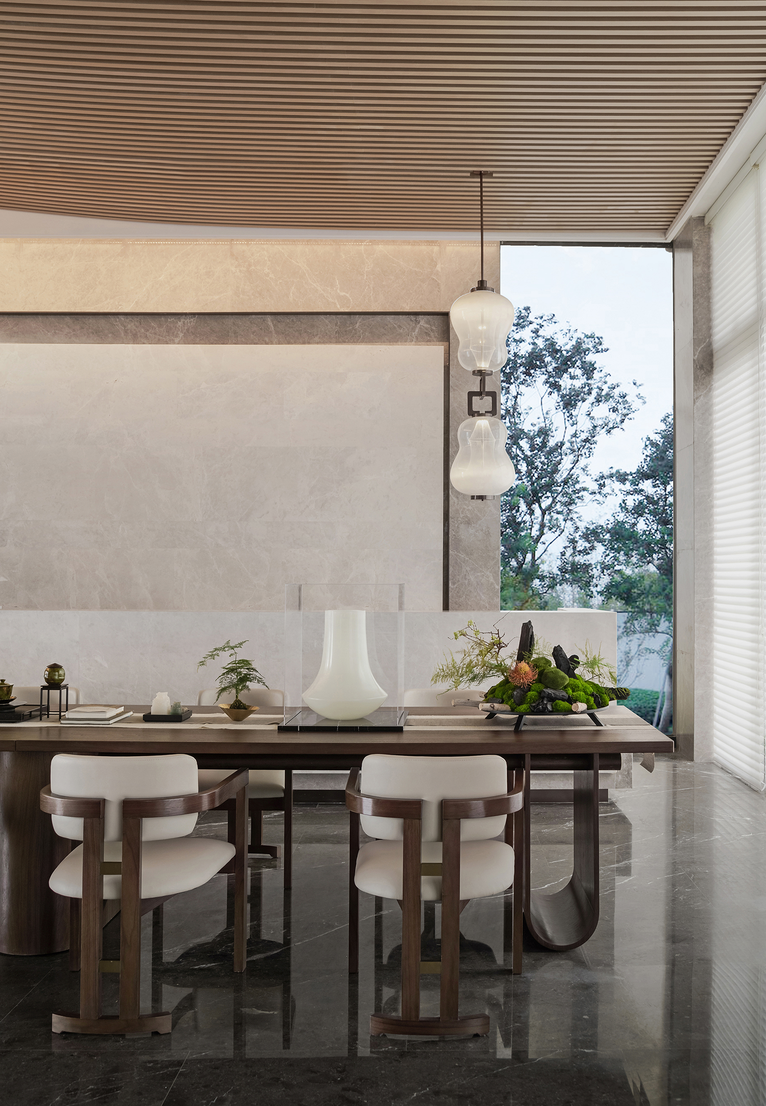 EH DESIGN GROUP 易和设计集团旗下易和室内设计团队与极尚软装陈设团队珠联璧合,引宋朝生活美学的「四艺」——点茶、焚香、插花、挂画,于江南雅居的设计中,落越韵吴风,水乡泽国之誉的嘉兴,现宋式清雅绰约的生活情趣,造金地·锦粼鸣庐项目。