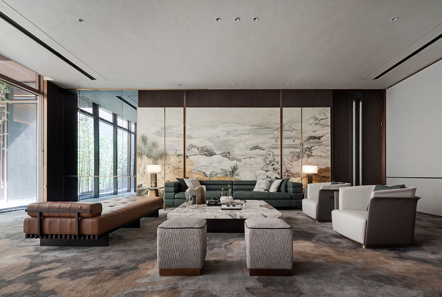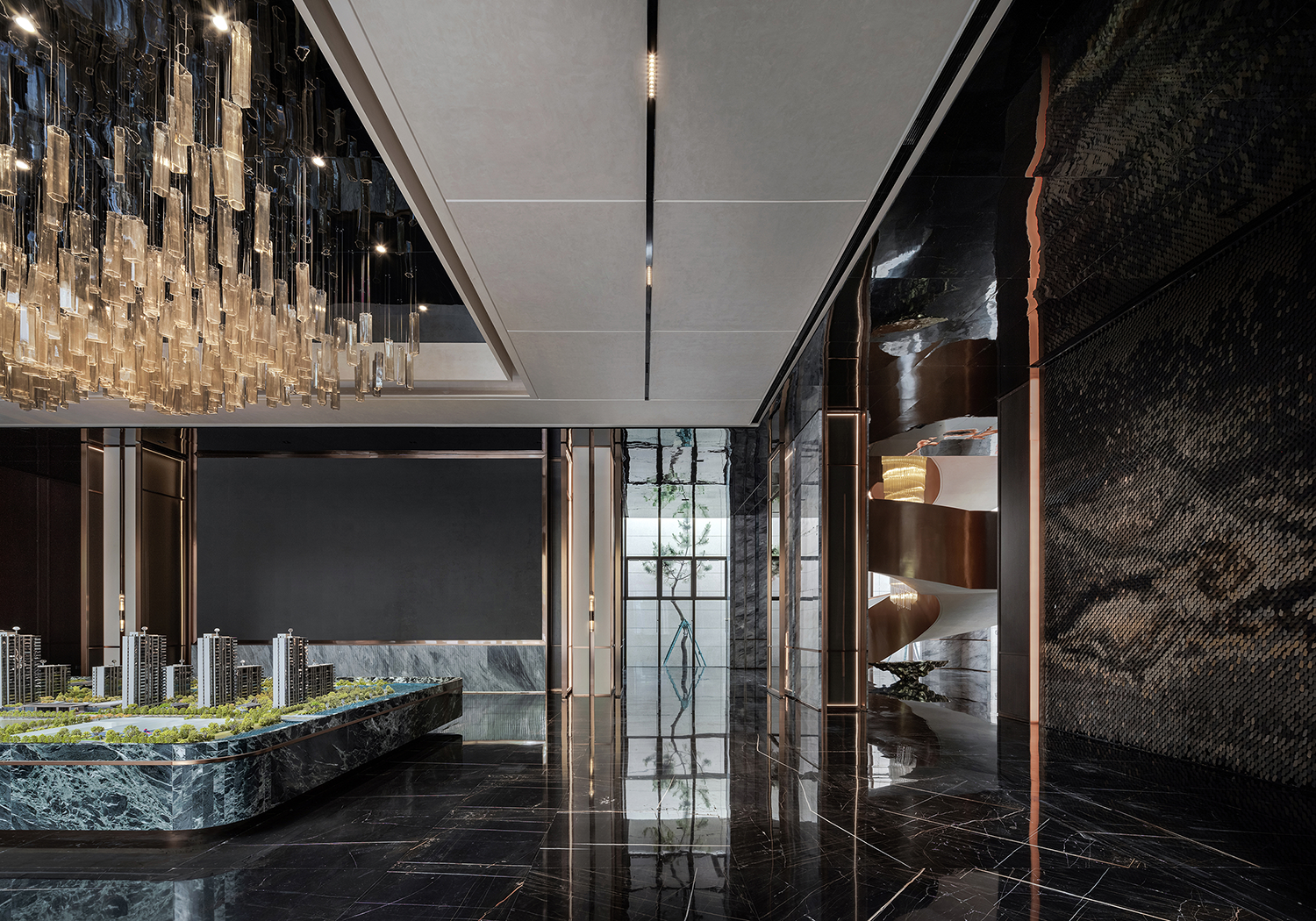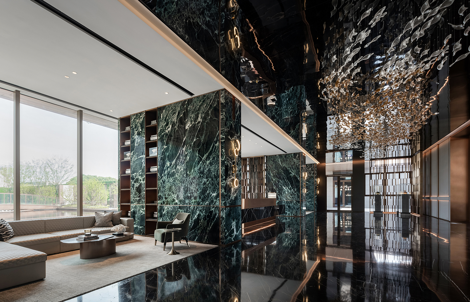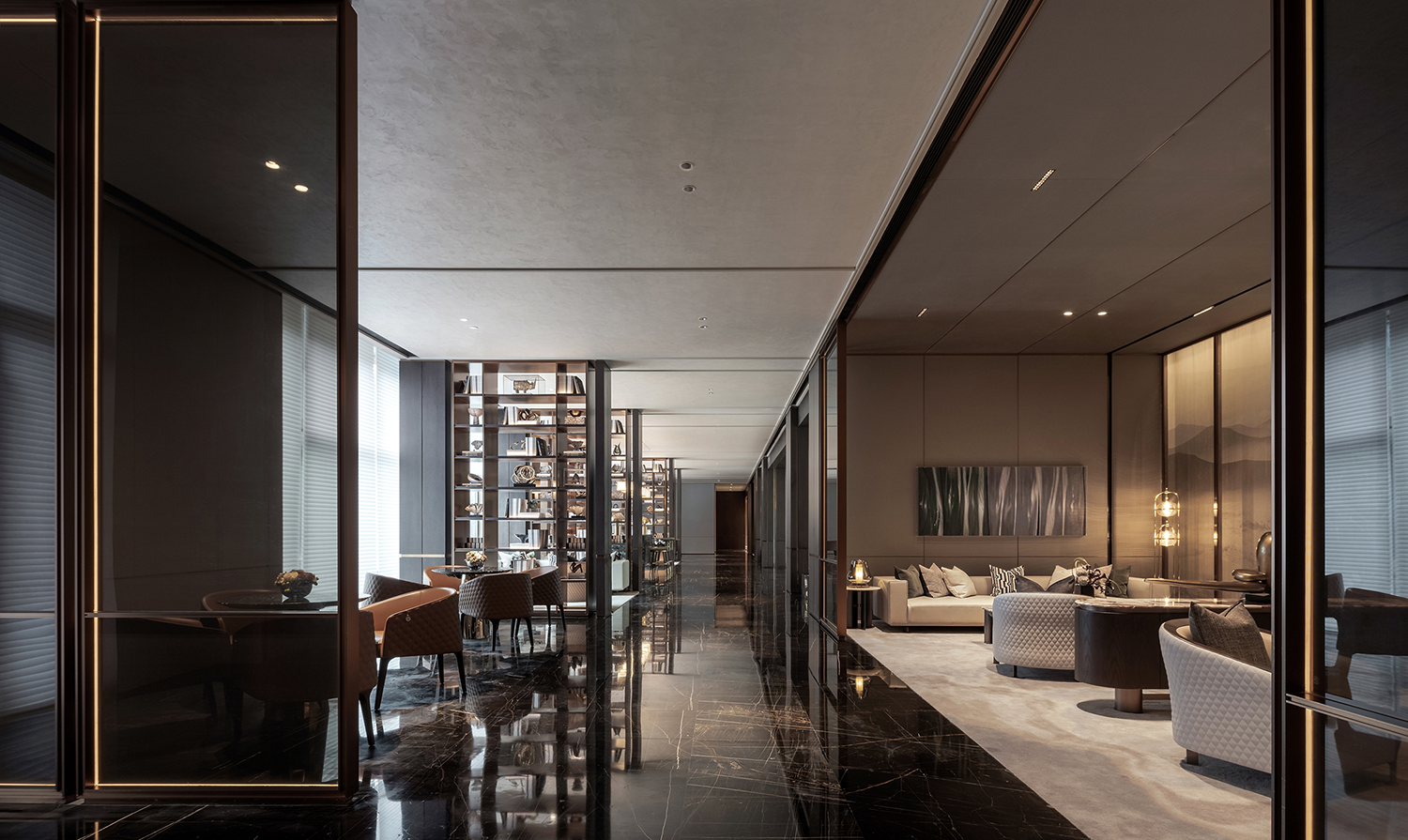 延续常州传统建筑“清雅精巧素”的独特风情,设计团队通过空间布局、线条层叠、色彩变幻、材质创新等一系列现代设计手法,将江南水乡的建筑与文化引入设计之中,与城市人文相呼应;同时又采用框景的手法,一步一景一画卷,与太湖山水契合,重构常州四水归堂府邸的居住形制,将礼、雅、精、趣等文化元素融于现代居住空间,从而打造出当代高端豪宅新标杆。