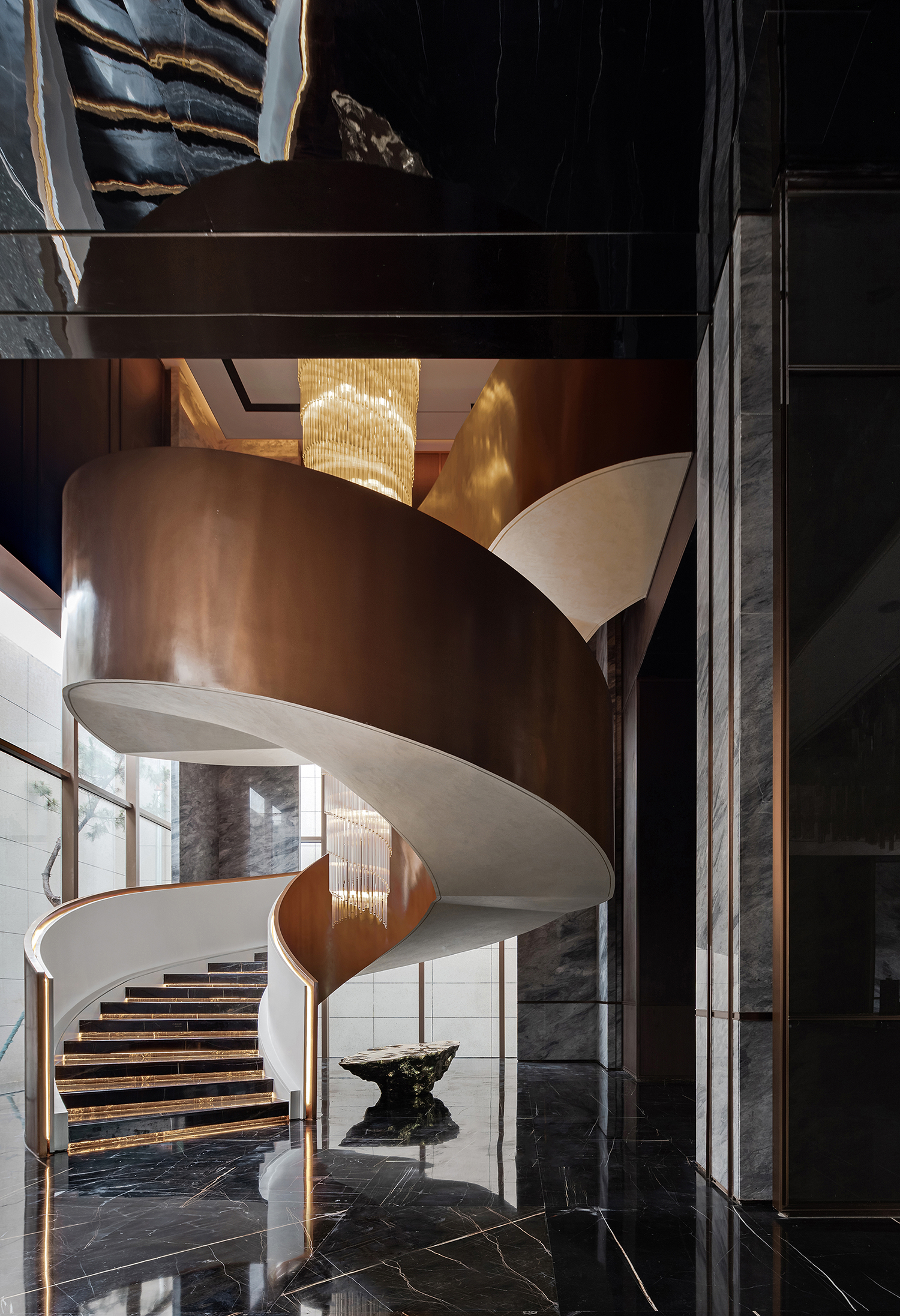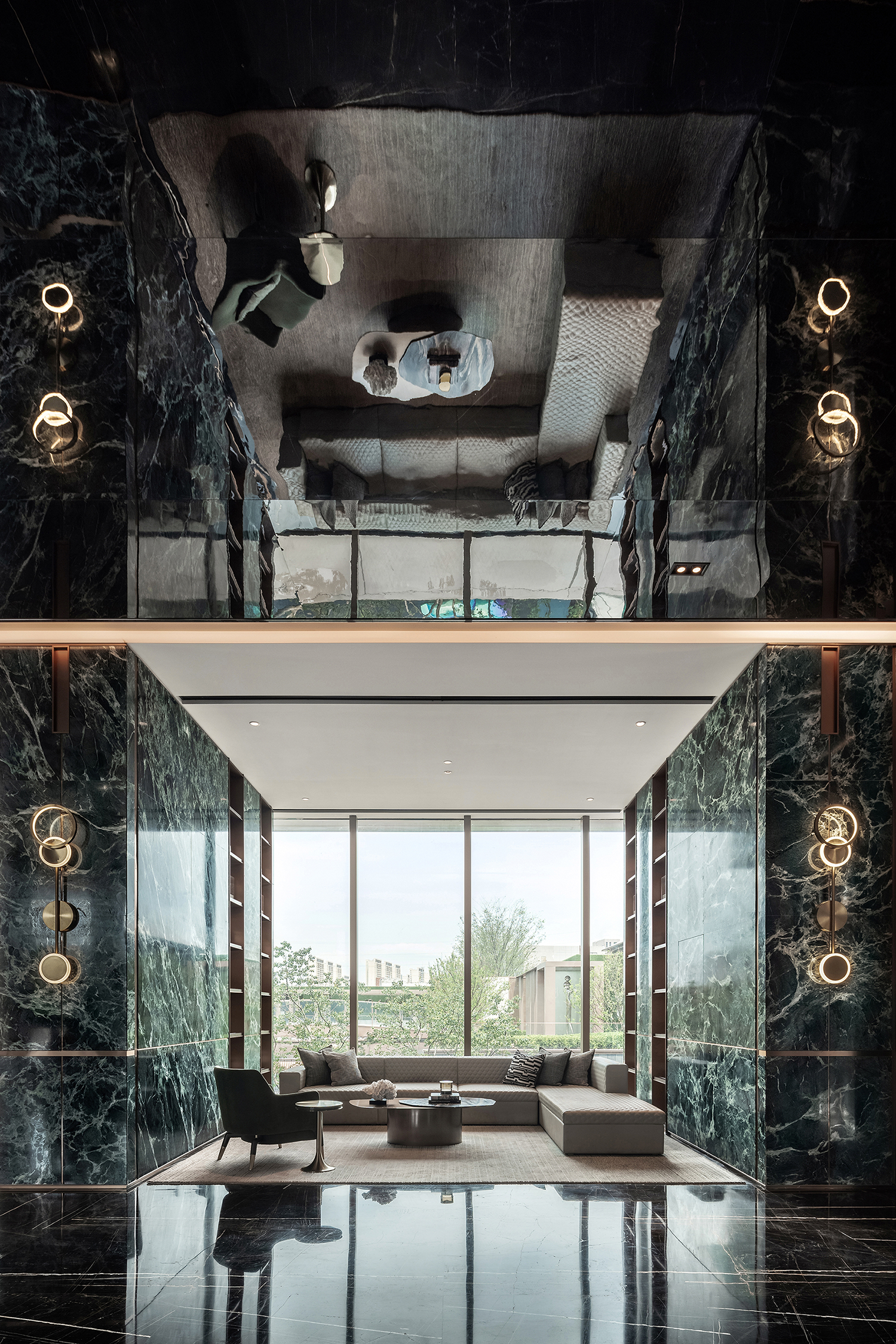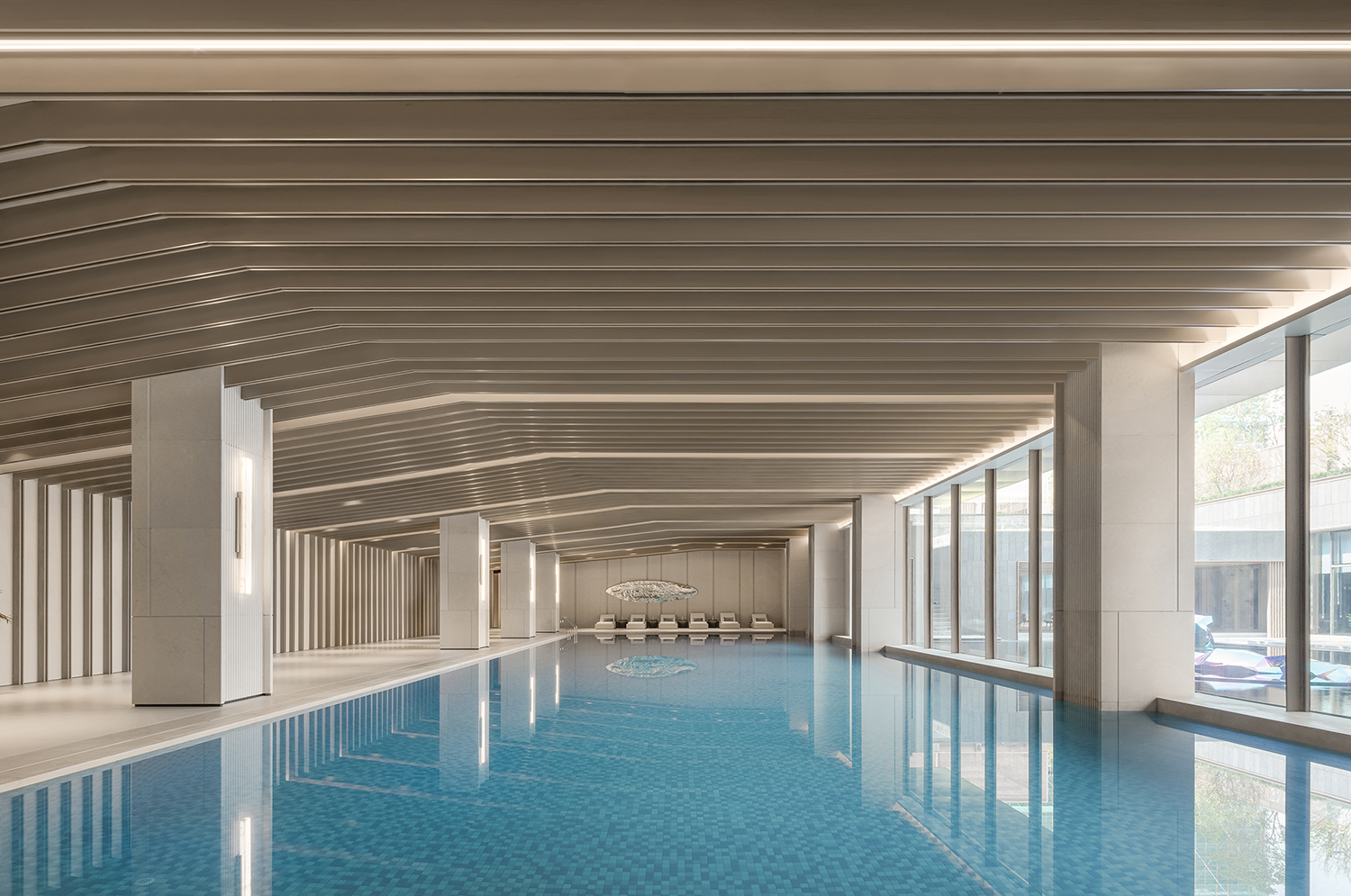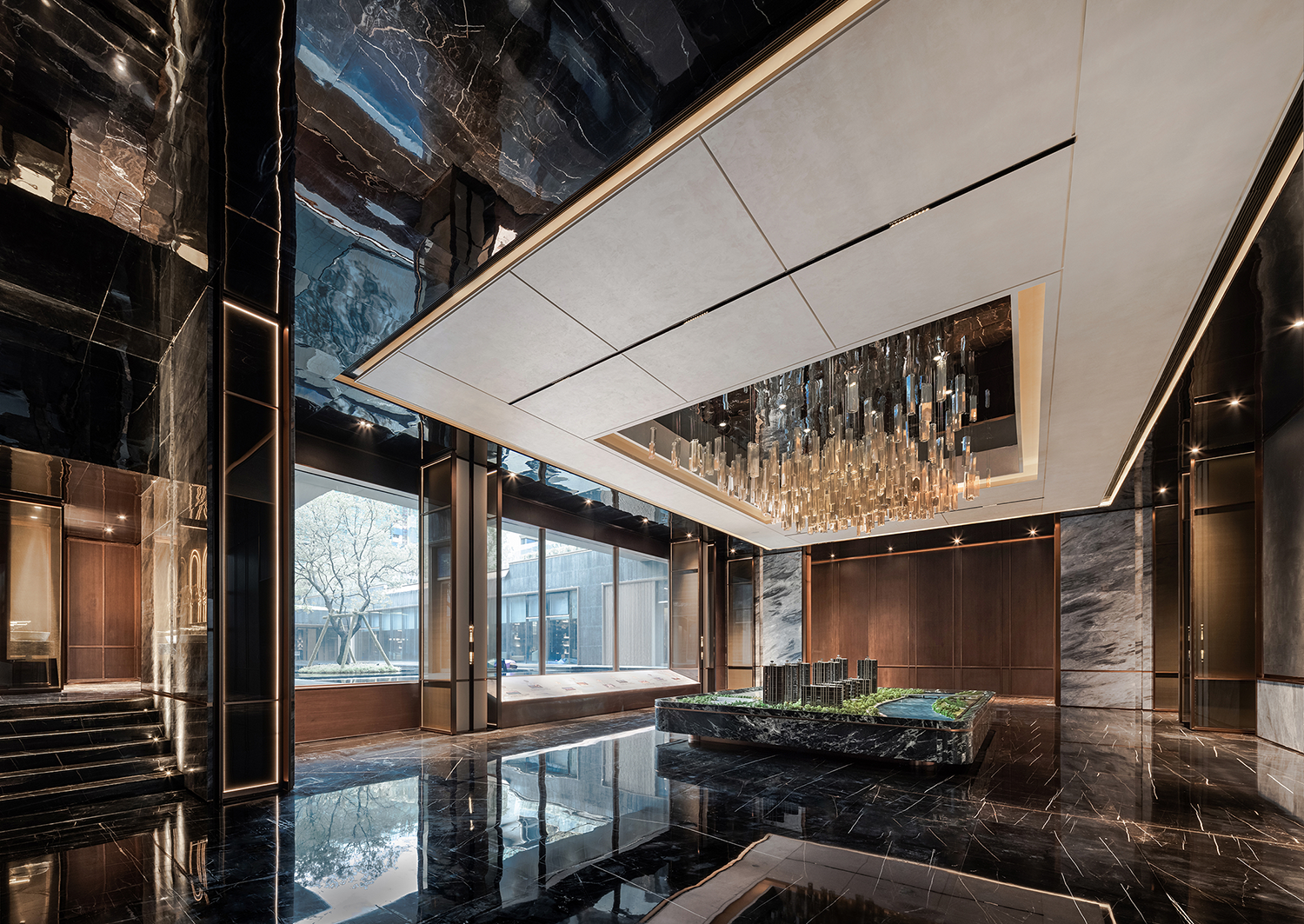 延续常州传统建筑“清雅精巧素”的独特风情,设计团队通过空间布局、线条层叠、色彩变幻、材质创新等一系列现代设计手法,将江南水乡的建筑与文化引入设计之中,与城市人文相呼应;同时又采用框景的手法,一步一景一画卷,与太湖山水契合,重构常州四水归堂府邸的居住形制,将礼、雅、精、趣等文化元素融于现代居住空间,从而打造出当代高端豪宅新标杆。