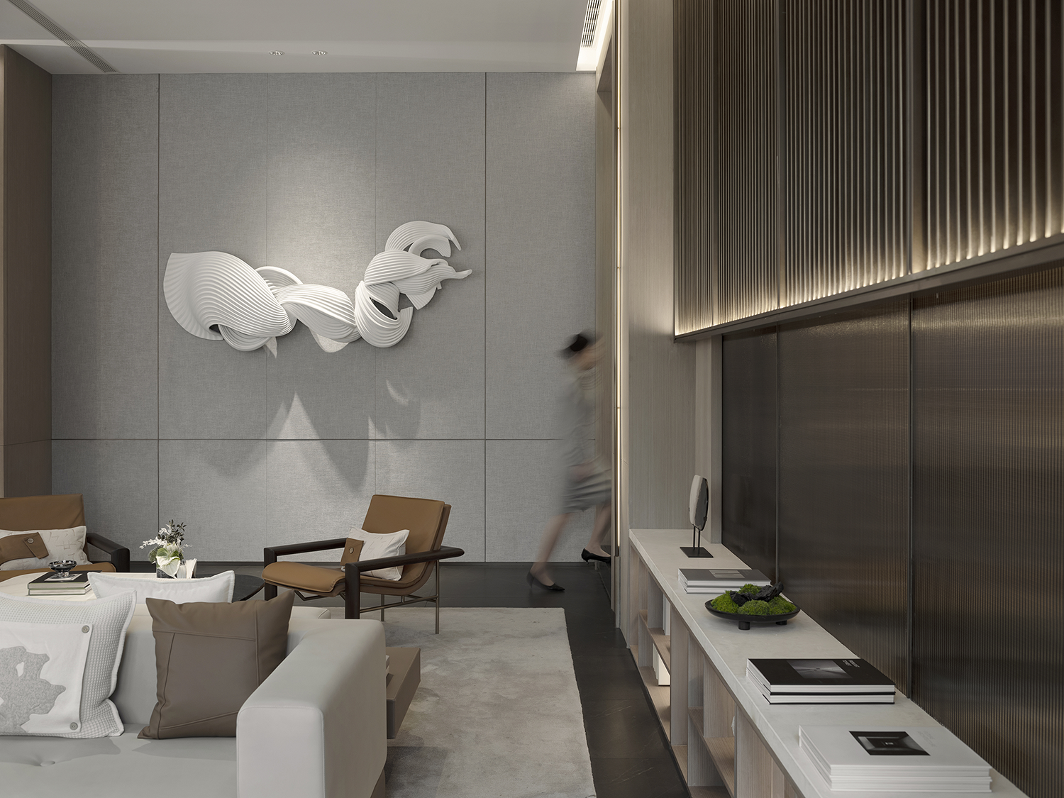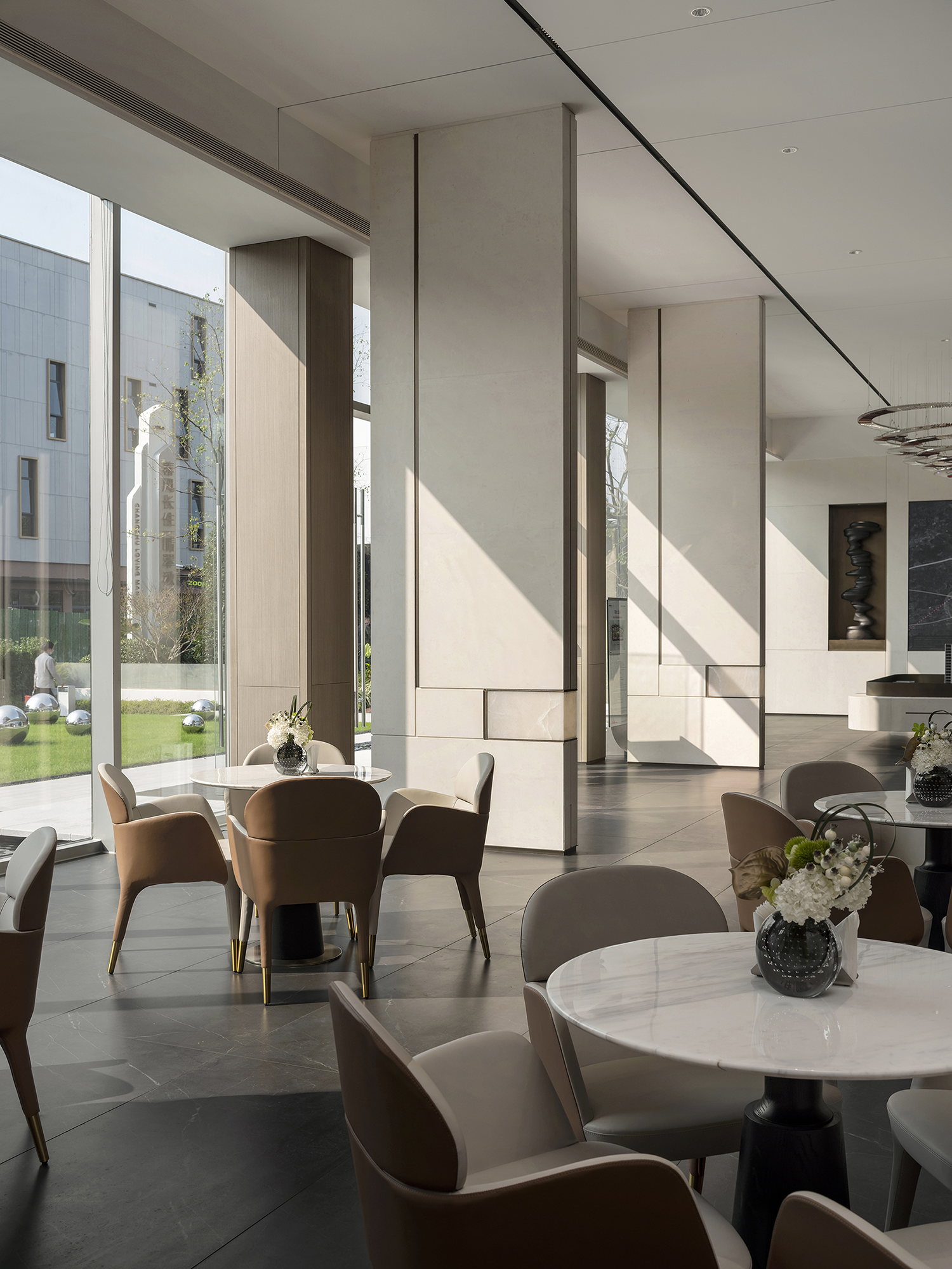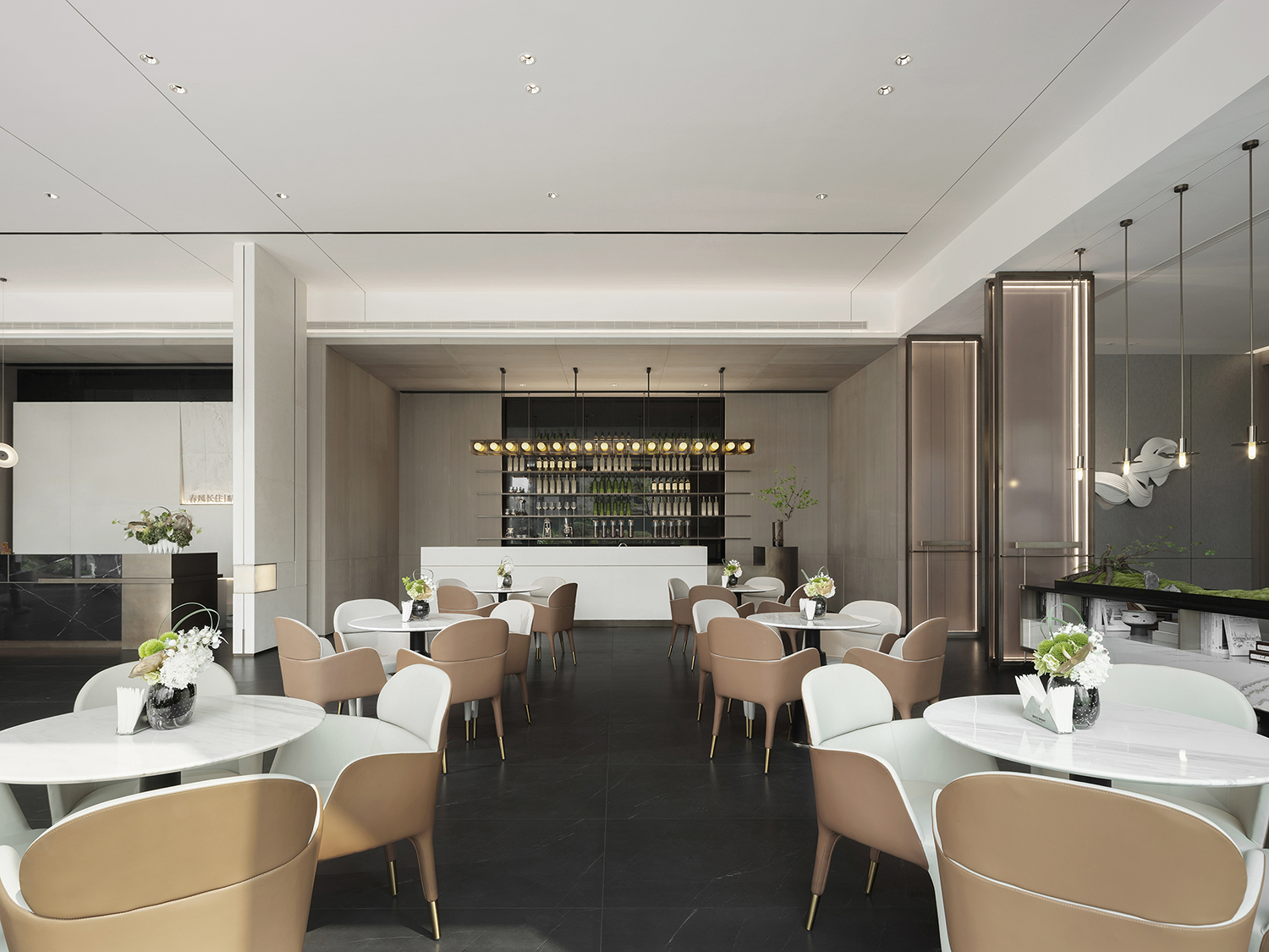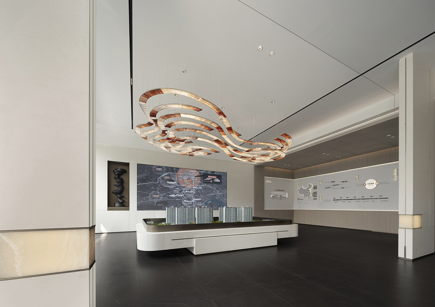 糅合江南人文色彩与现代主义语汇, 由 EH DESIGN GROUP 易和设计集团旗下易和室内设计团队设计的【春风长住·晴翠秋时】售楼处,以山、水、城、林融为一体,跳脱传统风格之说,攫取符合当代审美与传统人文的元素,以空间为载体,缔造出自然、人与生活之间的场所关系,构筑属于新都市精英们心灵栖居的安家之所,与未来以并驱,向历史以致礼。
