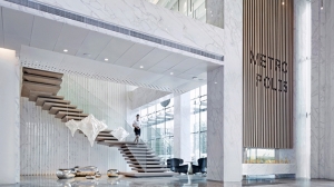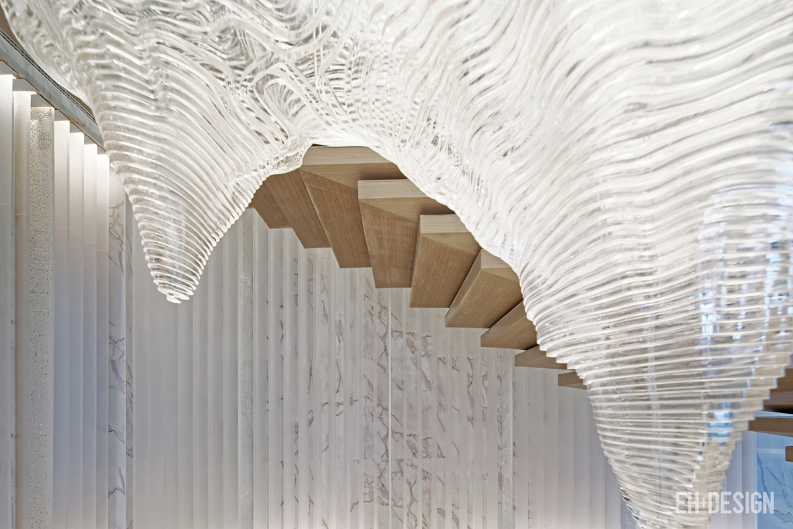 都会钱塘售楼处位于杭州钱塘江湾,它不仅是一座售楼处,更像是一个蕴含了静谧、纯粹、唯美艺术气息的艺术馆。设计师将钱塘的潮水意向进行重构与想象,以浪漫手法赋予了空间一个似水灵动、丰富而宽广的灵魂,完美的诠释了新现代主义的理性与浪漫。
