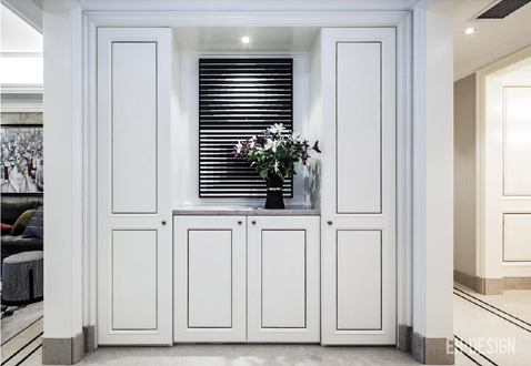 现在的豪宅都在回归,侯潮府的设计提倡让房子回归到生活的本源,一切从人的需求出发。设计师力求营造出一种唯美舒心的生活气息。空间选材丰富多元,白色线框护墙板米白色奥特曼石材,温润朴实的木饰面,花鸟图案墙纸等增添了空间的灵动与雅致。