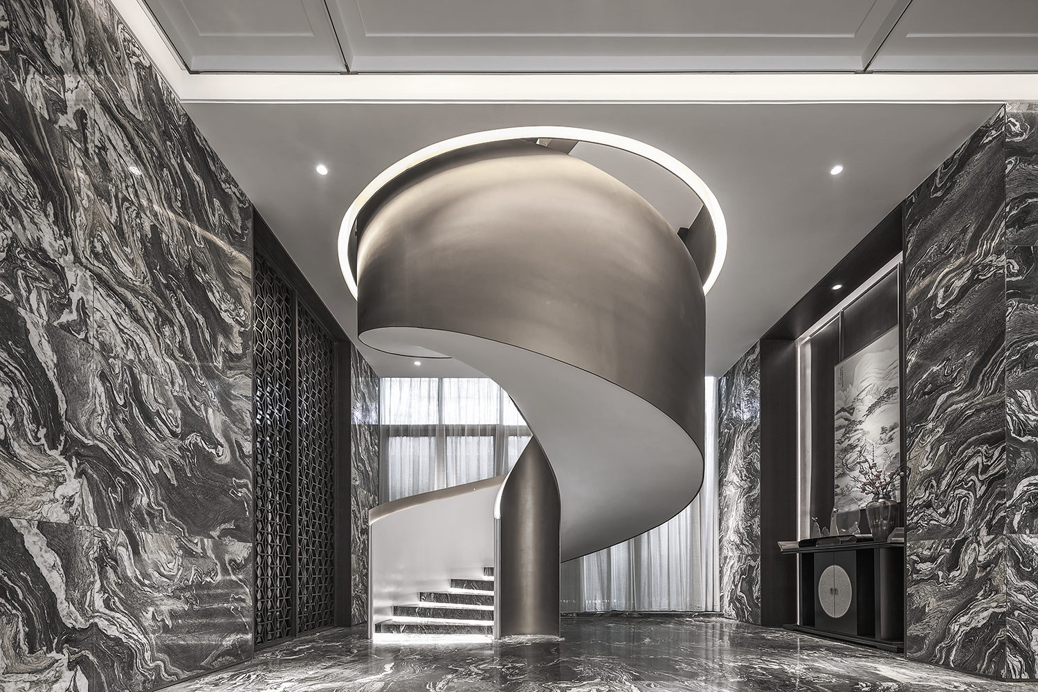 嘉宏·江左风华项目,位于古运河畔、毗陵驿边的常州老城区,历史与文化凝聚之地,对江南文化有着高度的文化认同和情感归宿。EH DESIGN GROUP 易和设计集团汲取东方雅致意趣,将文化之精髓镌刻在精致生活的肌理之中,尽显东方美学风雅。设计师运用新现代主义的设计语言,将文化、精神与情感糅合成空间的内核,使文化的气脉被静静抒写。