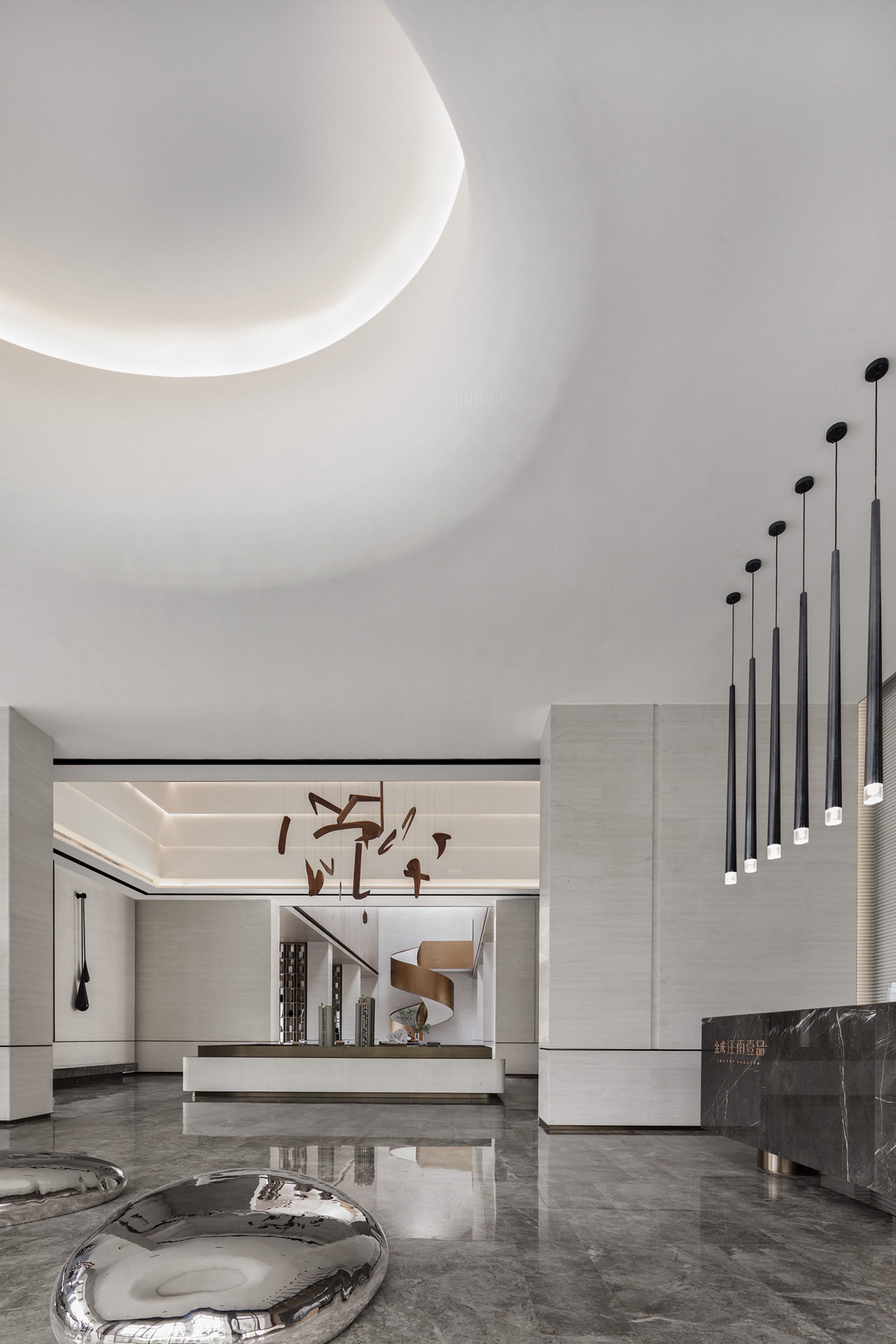 “取景在借”是李笠翁园林美学的精华所在,也是中国园林艺术中创造艺术空间,扩大艺术空间的一种绝妙手法。EH DESIGN GROUP 易和设计集团旗下易和室内设计团队,整体把控金翰集团金成(南宁)江南壹品售楼处项目室内设计,运用新现代主义设计手法取借景之精髓,营造诗意盎然的艺术空间,行走间山水画卷迤逦铺开,设计的雅趣向空间深处延展而去。